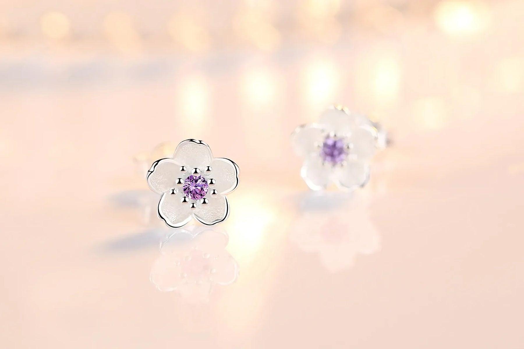 Boucles d'oreilles Puces Fleurs Zirconium